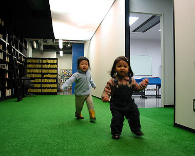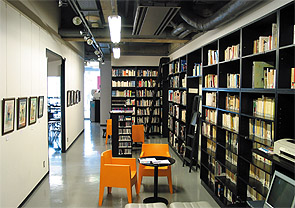 in a library in a language school, Alliance Françoise, Sapporo, Japan