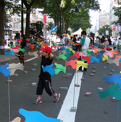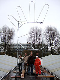 The work is another version of “Wind Yard”. Two wind works in Rotterdam were inspired by poplar trees in the local landscapes, which are also found in Sapporo, in the same climatic zone. The work comes back to its home town. |