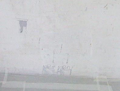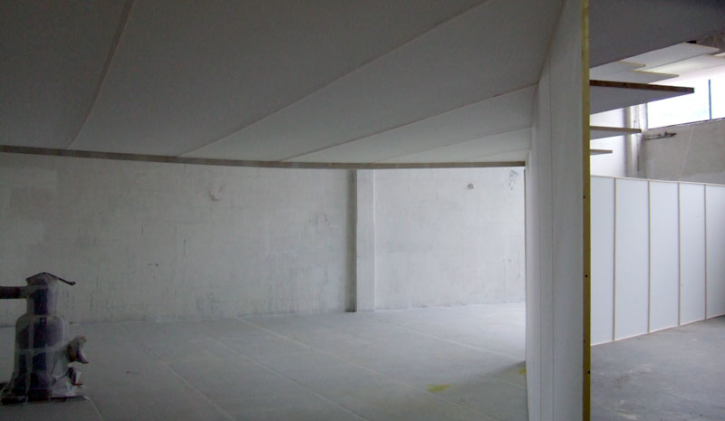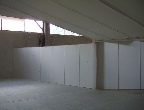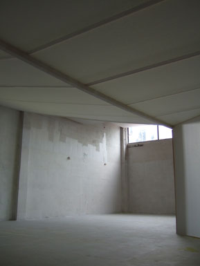 Constructed thin white paper walls and ceilings, with original concrete walls and floor also covered by thin white paper. The space had previously been used as a studio by artists who left marks throughout. Although these traces are covered by the paper, they still rise up to the surface to be seen. The work is a device to show both what exists and does not exist - now and in the past. |